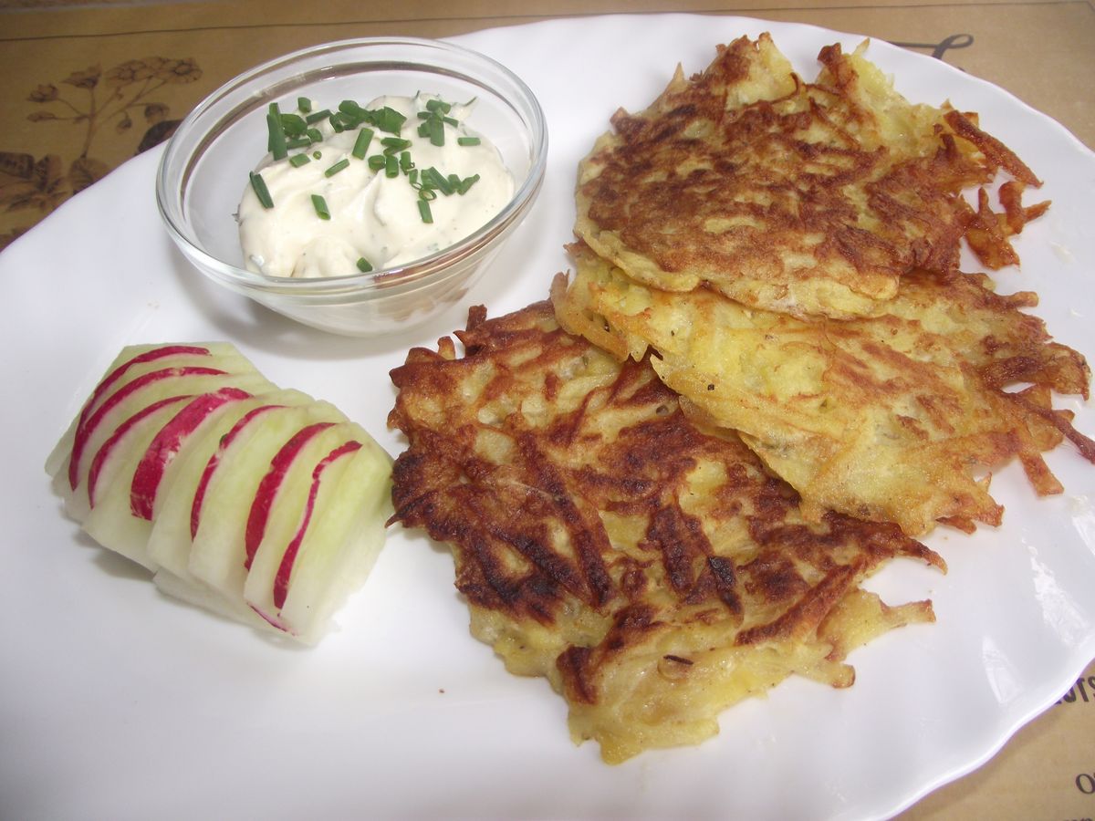 Kartoffel-Kohlrabipuffer mit Kräuterquark