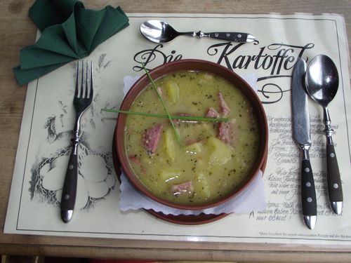 Kartoffelsuppe mit Mettwurst und weißen Bohnen