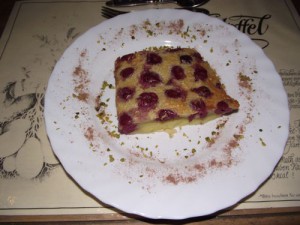 Mehl, Eier und Zucker verrühren, die Milch langsam dazugeben, Salz zufügen. Kirschen abtropfen lassen und unterrühren. Den Teig in eine gefettete Back- oder Auflaufform geben und ca. 35 Minuten bei 200 Grad backen. Unter Umständen ist es erforderlich, den Auflauf nach der Hälfte der Backzeit abzudecken.