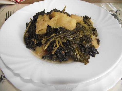 Grünkohl putzen und gründlich waschen,ca. 3 Minuten in kochendem Wasser vorgaren und ausdrücken. Zucker in einem großen Topf unter Rühren schmelzen und mit Zitronensaft ablöschen. Schalotten darin unter Wenden karamellisieren. Schmalz, Senf und Grünkohl dazugeben, kurz andünsten und mit Brühe ablöschen. Gewürfelten Speck hinzufügen. Zugedeckt 45 Minuten bei niedriger Hitze garen. Inzwischen die Äpfel vierteln, Kerngehäuse entfernen. Die Apfelviertel in Würfel schneiden und mit Apfeldicksaft beträufeln. Nach Ende der Garzeit Äpfel mit Saft zum Grünkohl geben. Herzhaft mit Pfeffer, Salz, Muskat würzen und zugedeckt weitere 7 – 10 Minuten garen.