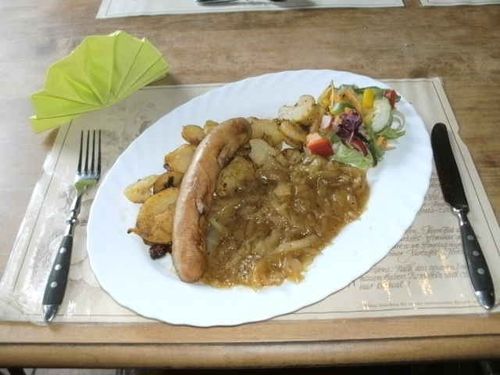 Das Schweineschmalz in einem Topf erhitzen, den Zucker zugeben und ganz kurz anrösten. Die Zwiebel zufügen und kurz anbraten. Den Kohl unterheben und mit der Fleischbrühe ablöschen. Etwas Pfeffer und Kümmel zugeben und unter mehrmaligem Rühren etwa 1 Stunde bei geringer Hitze köcheln lassen. Dabei, nach Bedarf, noch etwas Wasser oder Fleischbrühe nachgießen, damit nichts anbrennt. Sobald das Kraut wei ist mit Salz und Essig würzen.