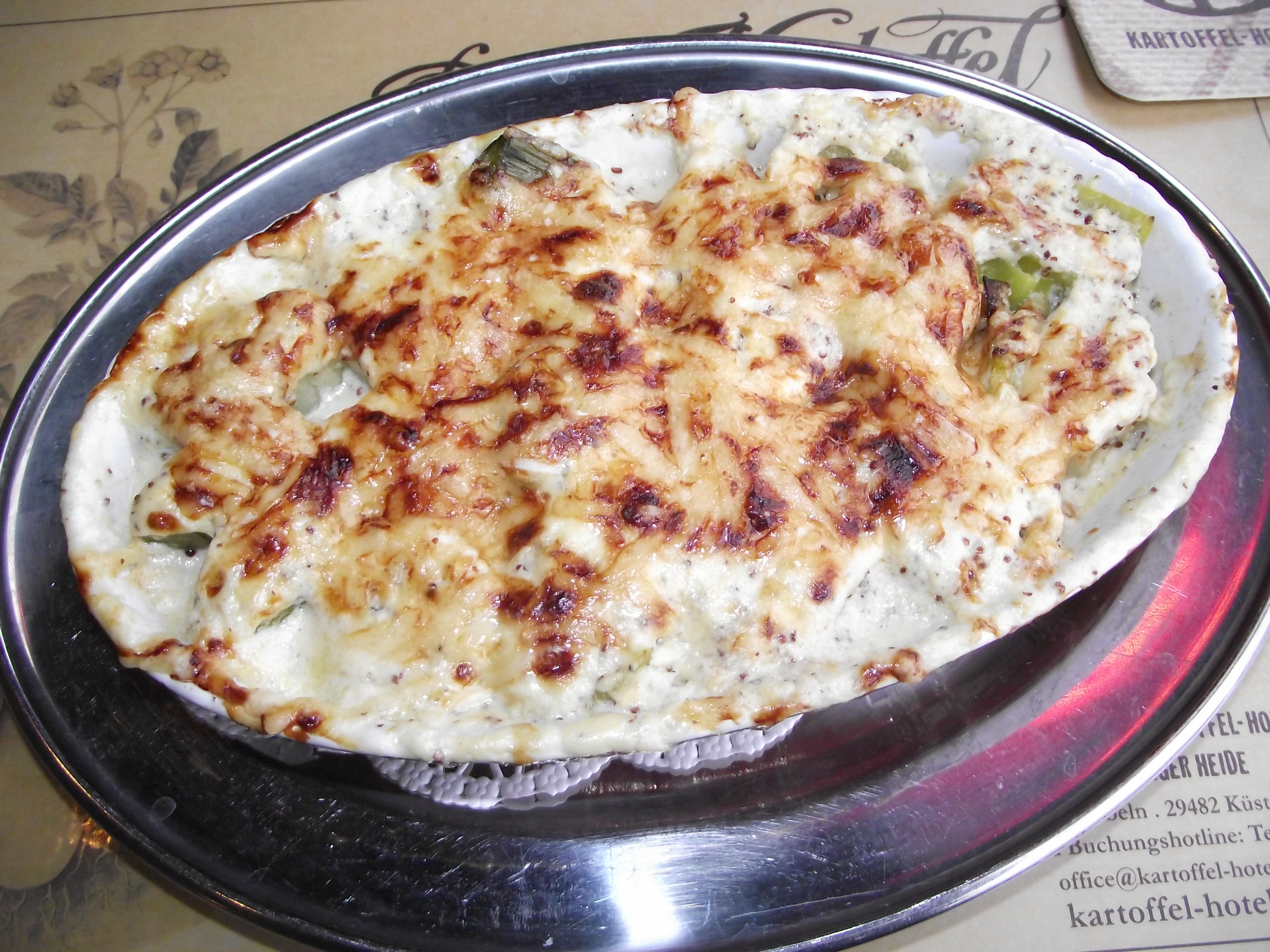 Den Backofen auf 200 Grad Ober-/Unterhitze vorheizen. Lauch putzen, waschen und in Stücke schneiden. In leicht gesalzenem Wasser ca. 5 Minuten blanchieren, abgießen und abtropfen lassen. Butter bei mittlerer Temperatur in einer Pfanne zerlassen. Mehl darin unter Rühren anschwitzen, Milch und Sahne dazugießen. Unter Rühren 10 Minuten köcheln lassen. Mit Salz, Pfeffer und Muskat würzen. Senf unter die Sauce rühren, nicht mmehr kochen lassen. Die Auflaufform buttern und die Lauchstücke darin aufstellen. Senfsauce darübergeben und den Auflauf mit Parmesan bestreuen. Im vorgeheizten Backofen auf der mittleren Einschubleiste ca. 35 Minuten goldgelb backen.