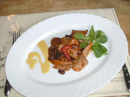 Schweinefilet in Scheiben schneiden, salzen und pfeffern. Die Filetscheiben im Bräter verteilen. Silberzwiebeln und Bohnen abgiessen und auf dem Fleisch verteilen. Zigeuner- und Chilisauce mit der Sahne vermischen und über das Fleisch giessen. Im vorgheizten Ofen (200 Grad) 60 Minuten backen.