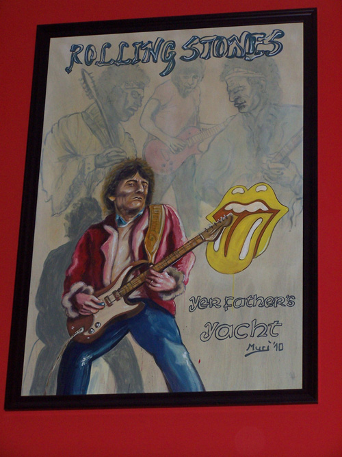 Beim Betreten des Gebäudes öffnet sich dann eine komplett andere Welt, man ist plötzlich mitten drin. Die gemalten Portraits der Bandmitglieder an den Wänden und bunt blinkende Flipperautomaten ziehen die Besucher in den Bann der Rolling Stones, letztere laden ein zum Ausprobieren. Keine Chance mehr zu entkommen, aber wer will das schon? Beim Gang durch das noch nicht ganz fertig gestellte Museum gibt es an jeder Ecke, in jeder Vitrine etwas Neues zu entdecken: Das geht von den urig- gemütlich eingerichteten Sitzecken bis hin zum original Billiardtisch von Ron Woods und Keith Richards, der schon an über 350 (!!) Orten der Welt stand und nun seinen Ehrenplatz im Rolling Stones-Museum hat- natürlich handsigniert. Aber auch Backstage-Pässe, über 2600 verschiedene Tonträger und Autogrammkarten sind für neugierige Besucher zu bestaunen.