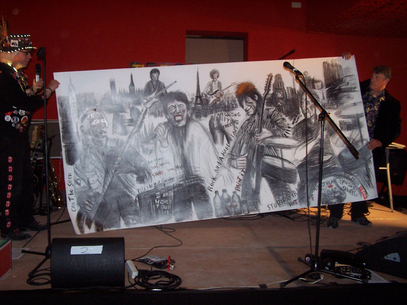 In einer bewegenden Rede dankte er zahlreichen Firmen, Helfern, Freunden und auch seiner Familie für die grandiose und bedingungslose Unterstützung zur Errichtung dieses einmaligen Projektes. Dass das Rolling Stones- Museum nicht nur einzigartig ist, sondern auch fördernd für das Stadtmarketing von Lüchow, da war sich auch Lüchows Bürgermeister Karl-Heinz Schultz sicher: „Wir können uns glücklich schätzen, einen Ulli Schröder in unseren Reihen haben zu dürfen.“ Sichtlich gerührt dankte Schröder dem Bürgermeister für die jahrelange Unterstützung seines Vorhabens. So betraten noch viele weitere Gäste die Bühne im Frontbereich des Museums, um den Abend mit persönlichen Anekdoten um die Rolling Stones und Ulli Schröder zu untermalen. Darunter auch ein Dressing-Room-Mitarbeiter der Rolling Stones und zahlreiche Portraitmaler der Band. Einer von ihnen ließ es sich nicht nehmen, an diesem Abend noch ein besonderes Geschenk zu überreichen: Das Bild: „Die Rolling Stones auf Tournee im Jahre 2012“, worauf Ulli Schröder und alle anderen Fans insgeheim hoffen.